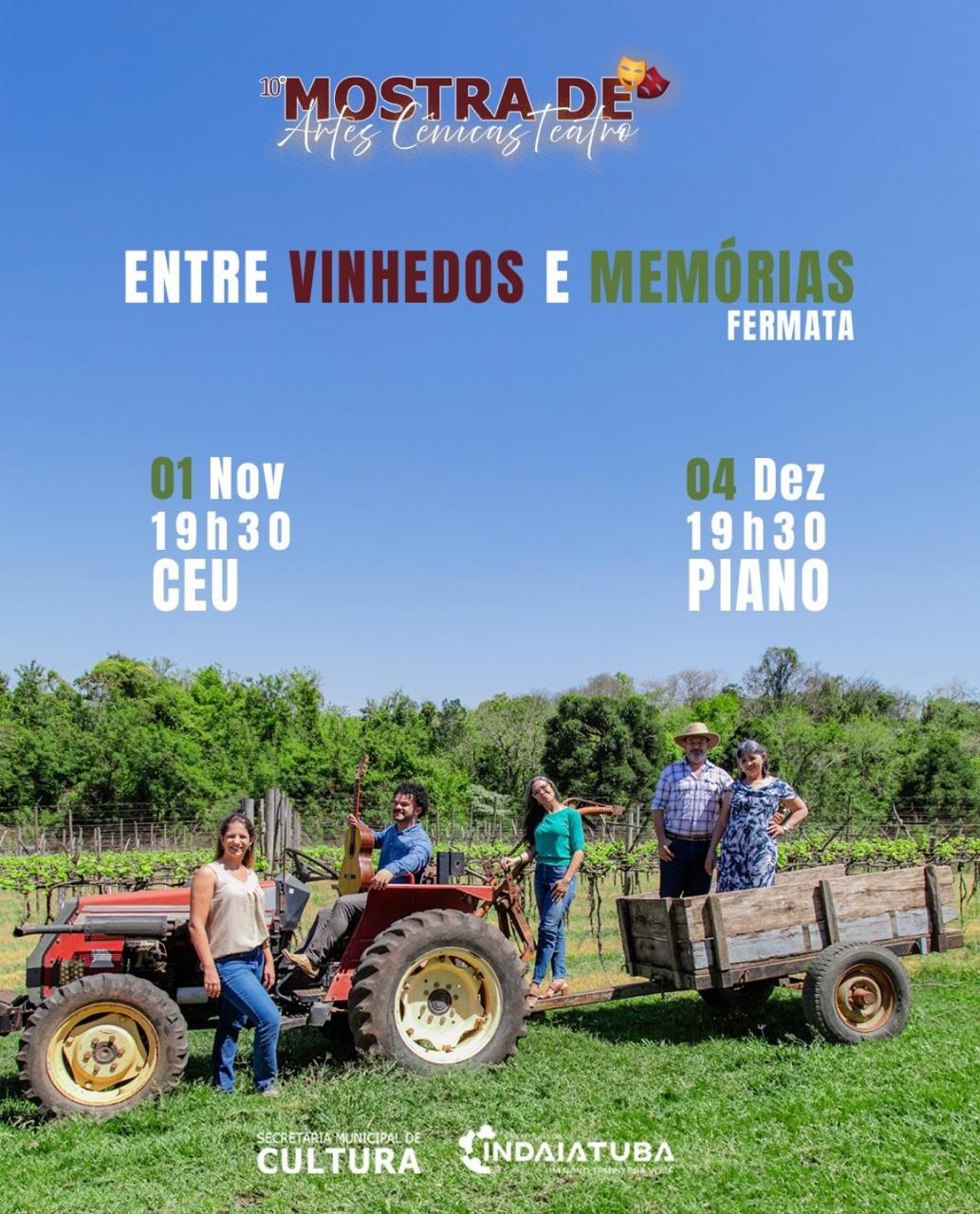 Musical documental Entre Vinhedos e Memórias – o homem que plantava esperança, espetáculo que conta a história de Ari Facchini, produtor rural de Indaiatuba (SP), cuja vida é marcada pela dedicação à agricultura familiar e à produção artesanal de vinho e suco de uva, dentro da 10a mostra de artes cênicas e 4a mostra de circo.