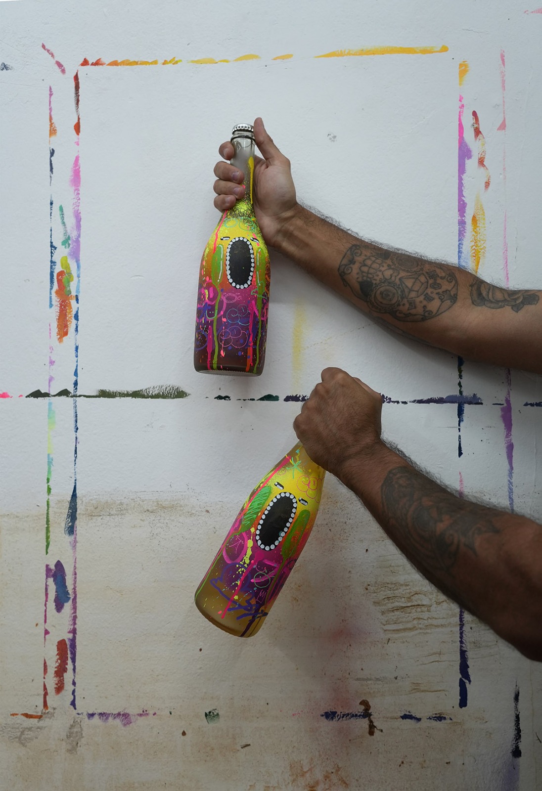 Cada artista desenhou em duas garrafas de espumantes de estilos e uvas variadas, entre brancos, tintos e rosés, são eles: Ana Scarcelli, Appalachia, Felipe Reis, Filipe Harp, Jaque Vieira, Leandro Alves, Celopax, Marcelo Machado, Marcinha Dark, Henrique ‘Ogro’ Perrone e Vitinho Vieira.