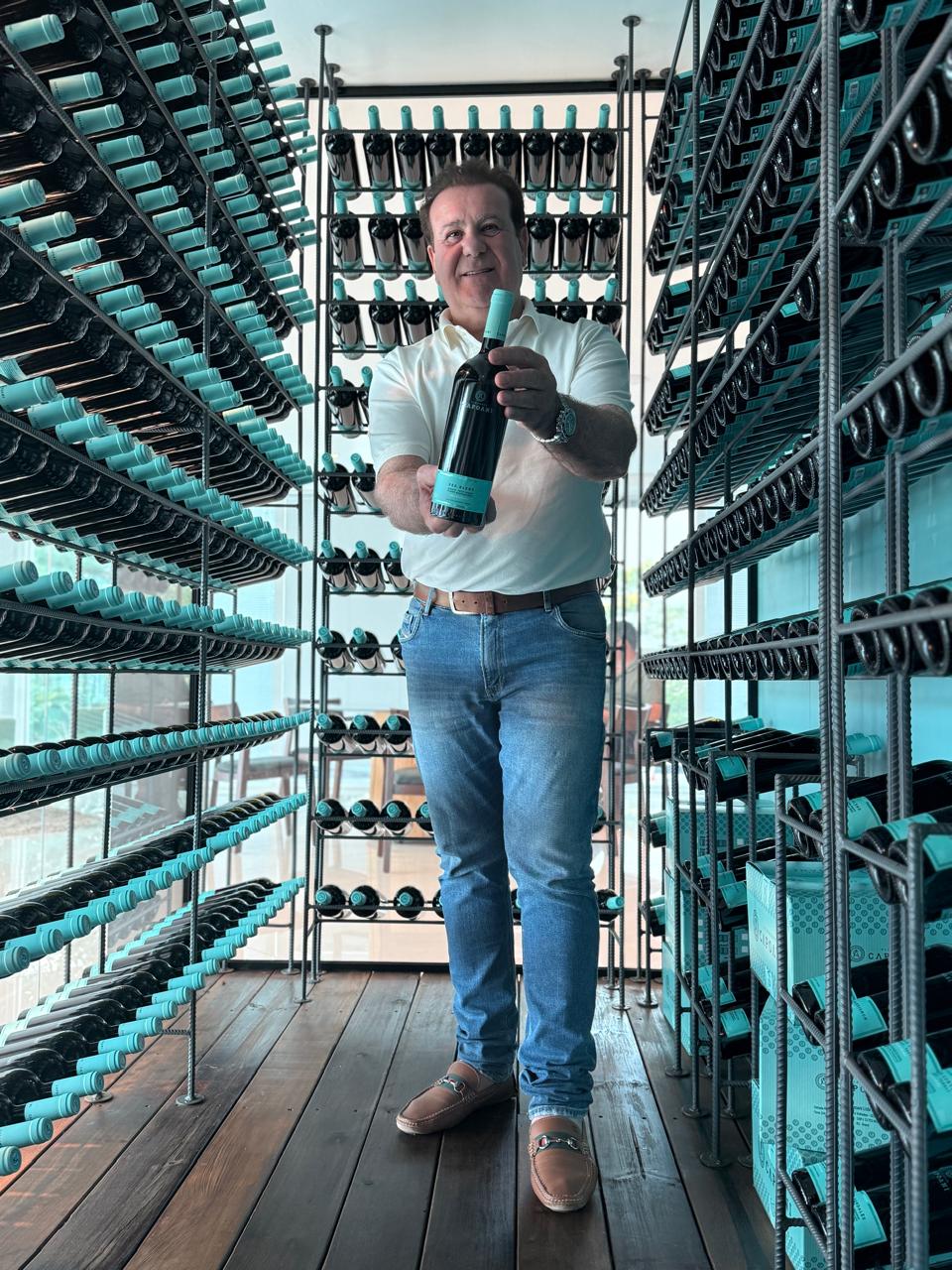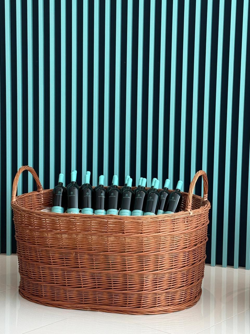 Depois volta no tempo e lembra que na conversa ele ainda não tinha contado como foi que a cor, finalmente, surgiu: “um dia a cor veio”, conta, entusiasmado. “Envolvi apenas a minha família e disse pra eles que iam me ajudar a escolher uma cor para os rótulos. Dei como exemplo a ‘viúva’ Clicquot. Mas não teve jeito, isso levou quatro ou cinco anos”, conta, “até que um dia meu filho foi pros Estados Unidos para atender um cliente dos móveis – o vinho já estava pronto e engarrafado, guardado. Na volta passou na minha casa e abriu uma mala, dentro dela tinha dentro uma sacola da Tiffany: quando eu botei o olho, eu soube.”, sorri, “aquela era a nossa cor.”